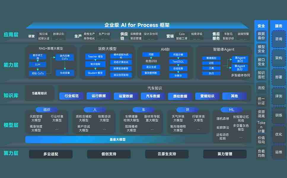 征途国际问学智车解决方案是一套基于AI技术的汽车行业智能化系统,,覆盖从底层算力到顶层AI应用的全栈方案。。。方案由算力层、、模型层和应用层组成:算力层,,方案支持多种一体机配置,,,具备云端灵活部署、、、、多云适配以及动态优化计算资源的能力;模型层,,征途国际问学平台版提供了企业级AI应用一站式构建与管理平台,,支持基于后训练强化技术的汽车企业专属模型的训练、、、、评测和运营;应用层,,,,征途国际问学DeepSeek版提供包括超级员工、、、、智能招采、、、、智能营销、、智能客服、、、AI for BI等一系列解决方案,,,可助力汽车行业实现数字化转型,,让管理更智能、、、响应更敏捷。。